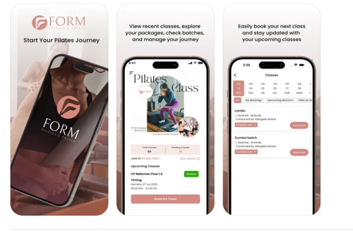 FORM PILATES AND PHYSIO App allows user-friendly platform for seamless and faster class bookings, rescheduling and cancellation. The App also brings pilates package selection and payments for pilates classes at your finger tips.